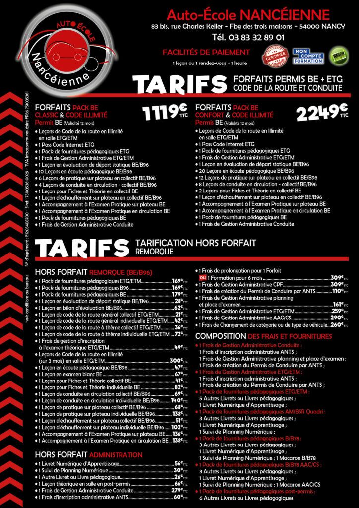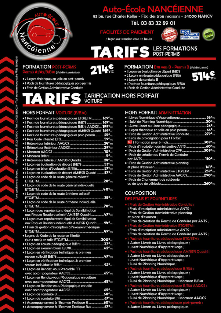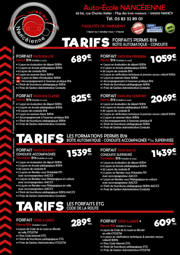 • Formation traditionnelle (Permis B) en Boîte Manuelle ou (Permis B78) Automatique